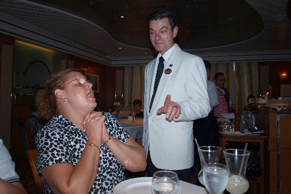 We're on the final leg of our cruise; 767.5 nautical miles to Fort Lauderdale. We woke to a beautiful day and a calm sea again. After breakfast, we found ourselves in the casino for a ½ hour or so. When we tired of that, I cashed out my winnings on my cruise card and it was back to the staterooms to spend a lazy morning enjoying very smooth sailing. click picture to enlarge Well, it wasn't exactly a lazy morning, but a lazy day. I finished up a book I had been reading and started in on a second one. Lunchtime came and went with no desire to eat. And, in between doing nothing we took an hour or so out of our busy schedule today to pack. They wanted our packed suitcases outside of our rooms before dinner so the crew could pick them up for transfer to the pier in the morning. At 4:00, Lee and Shelly trooped down for their final go at bingo. The jackpot had grown to $2,000. We'll see what sad news they have when they return. Well, guess what? It was sad news. The jackpot was finally won but not by our girls. Oh well. At 5:30 we all trooped down to the dining room for our last dinner on board. When dinner was done, the assistant waiters performed the traditional Baked Alaska grand march by making several loops throughout the dining room with their desserts held high. They were led by the maître d' and the dining room manager. Lots of fun. click picture to enlarge After dinner we drifted down to the casino for a last try at a jackpot. It was not to be. We finished up the day with some last minute organizing and packing, had a cocktail or two on the balcony, then off to bed by midnight. |